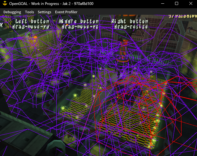 The decompiler will now export a level's collision meshes and the collision renderer that was written for Jak 1 has been brought over to Jak 2 to display them.