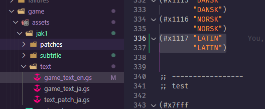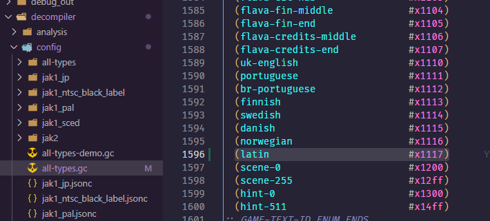 1. We now have to setup text entries for this new language. First add it to the game-text-id enum in the respective all-types.gc file, for Jak 1 that is decompiler/config/all-types.gc