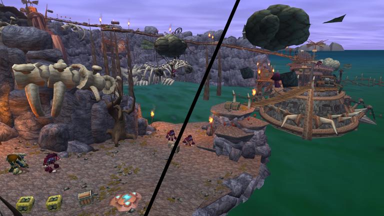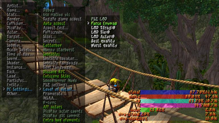 OpenGOAL level-of-detail (LOD) control (left: highest detail; right: lowest detail)